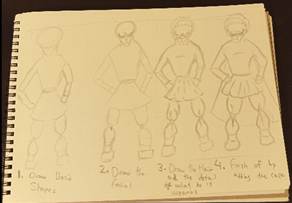 Character design-During this I would draw my own character during lectures.